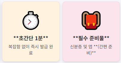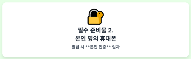 - ✅ **본인 명의 휴대폰:** 발급 시 **본인 인증 절차**를 위해 반드시 필요합니다.