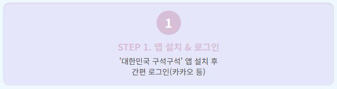 - **STEP 1. 앱 설치 및 실행:** '대한민국 구석구석' 앱을 설치하고, 간편 로그인(카카오, 네이버 등)합니다.